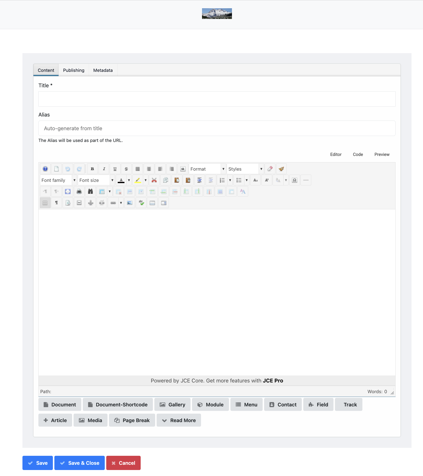 Step 4 - Edit your article in the text editor, then click "Save & Close " when finished your editing